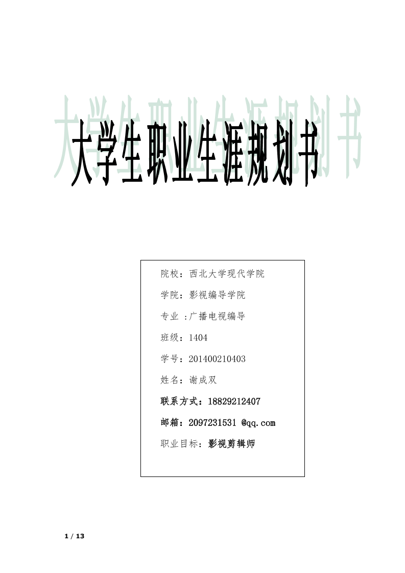 • 生涯规划书模板