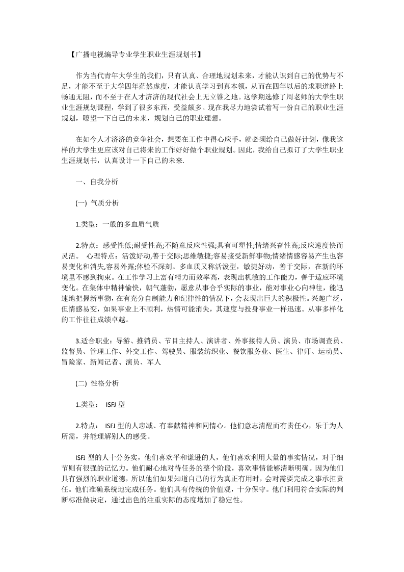 广播电视大学职业生涯规划书范例
