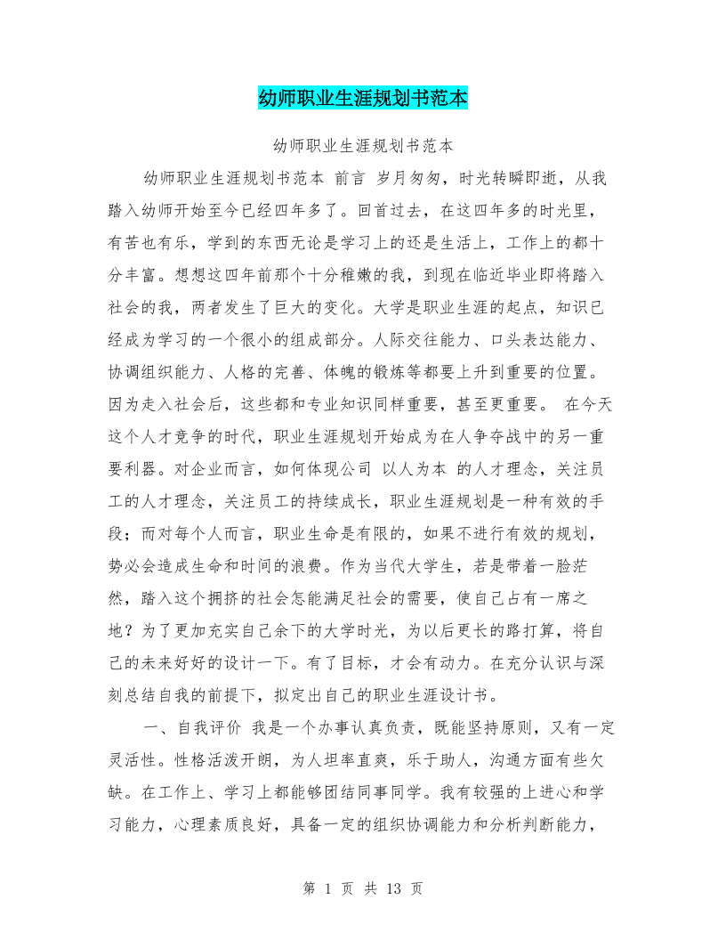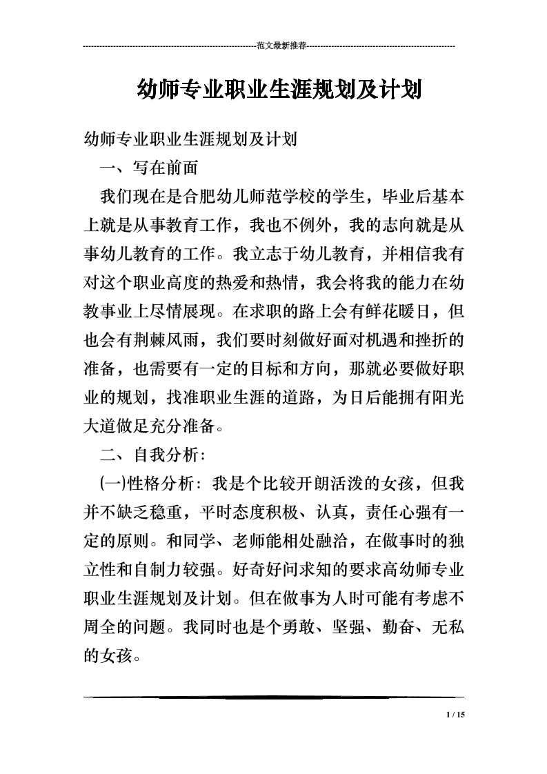 幼师大学生职业生涯规划书