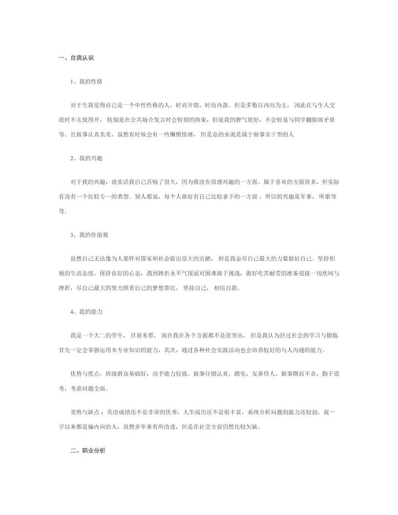 生涯规划书模板