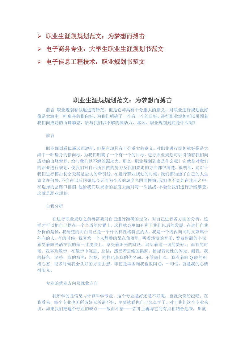 职业生涯规划书模板列表