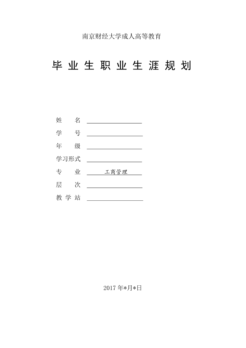 南财大毕业生职业生涯规划-工商管理