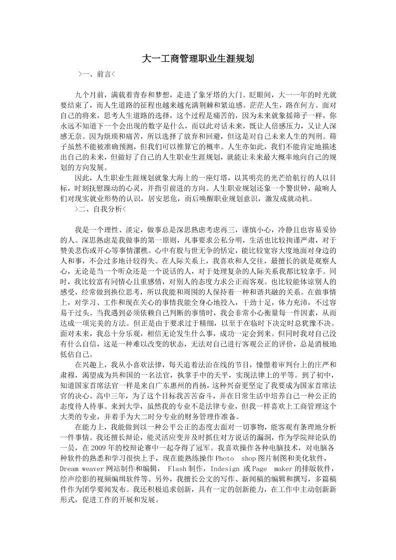 大一工商管理职业生涯规划