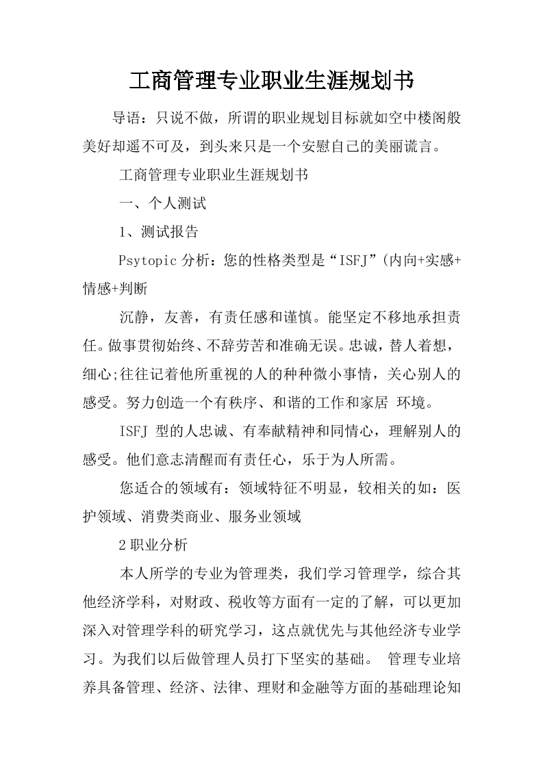 工商管理专业职业生涯规划书范文