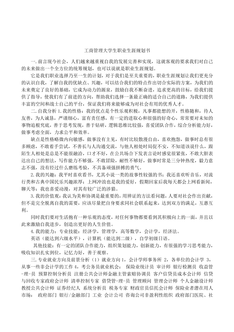 工商管理专业大学生职业生涯规划1