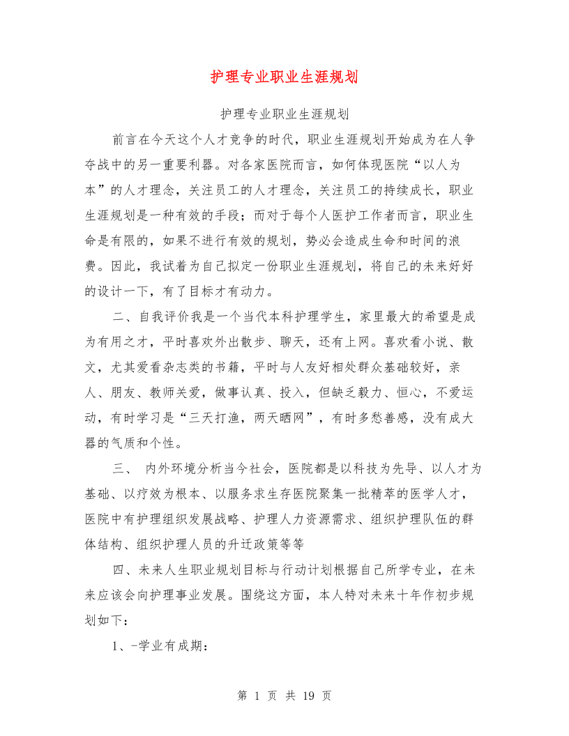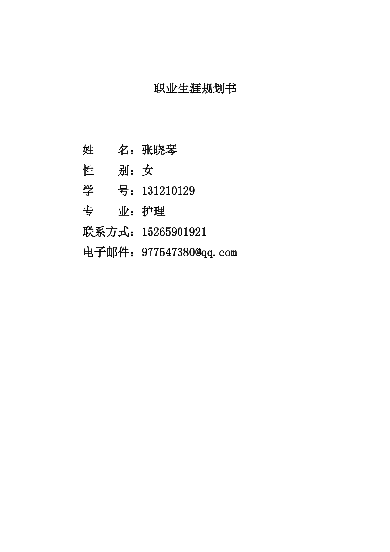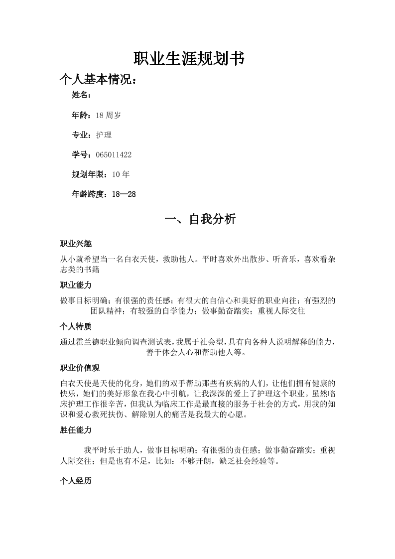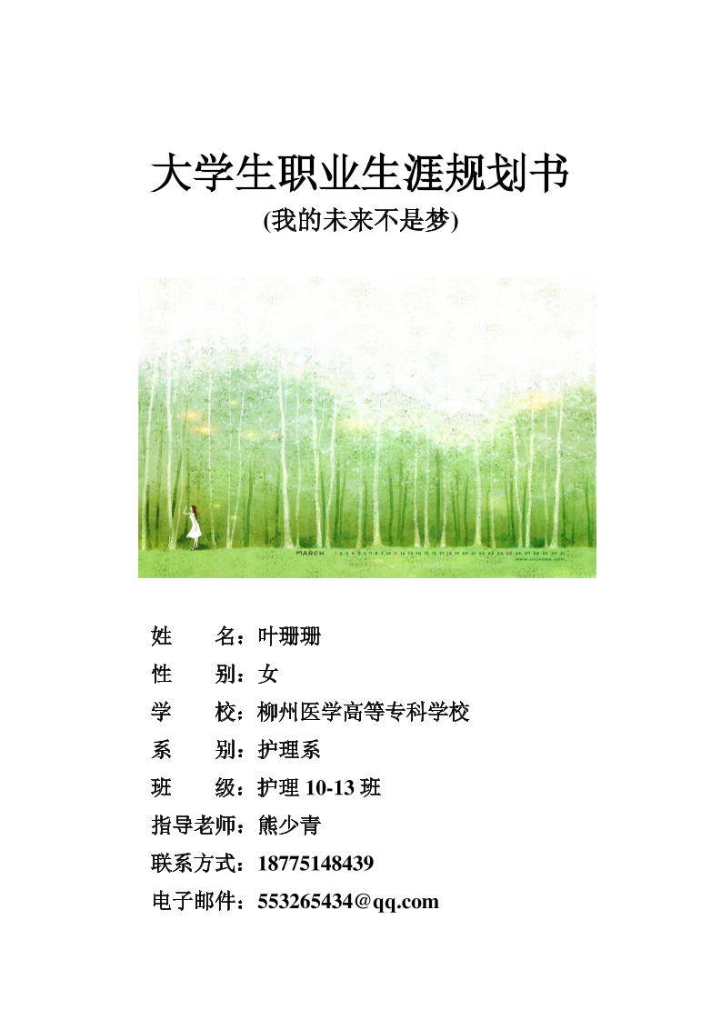 护理10-13班叶珊珊全国大学生职业生涯规划书