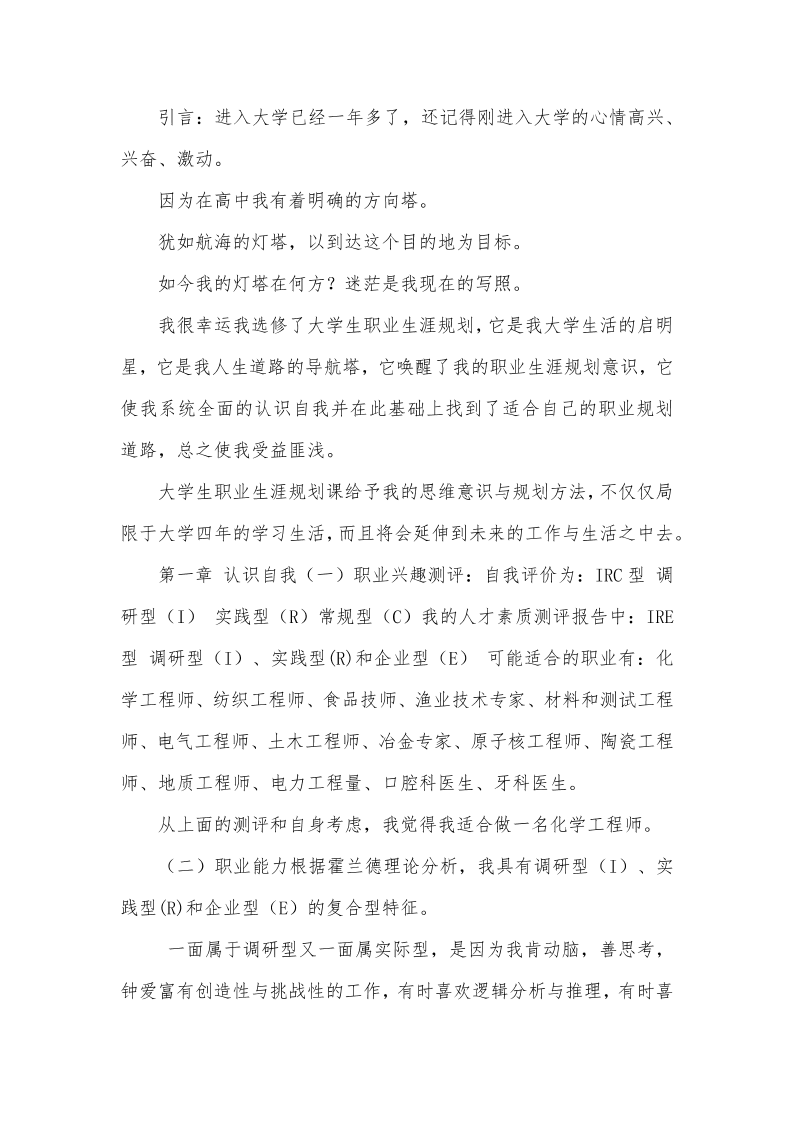 04 化 学 专 业 大 学 生 职 业 生 涯 规 划 书 3