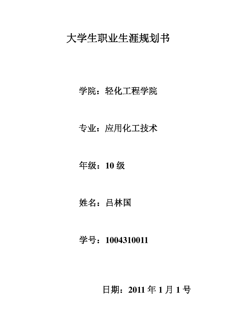 大学生职业生涯规划书(作者:吕林国)
