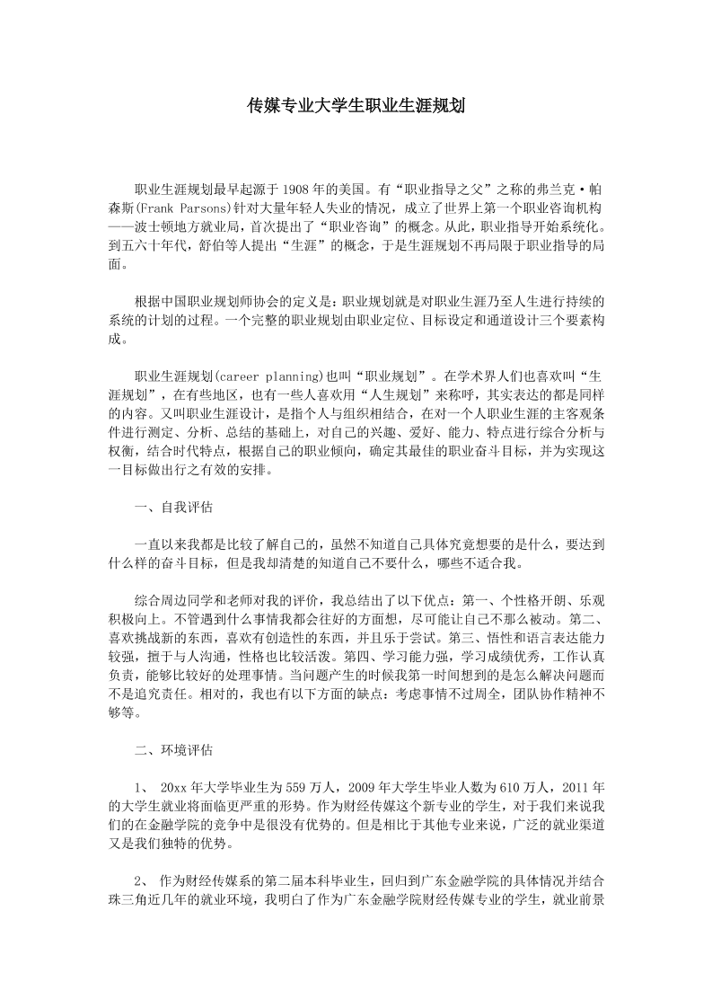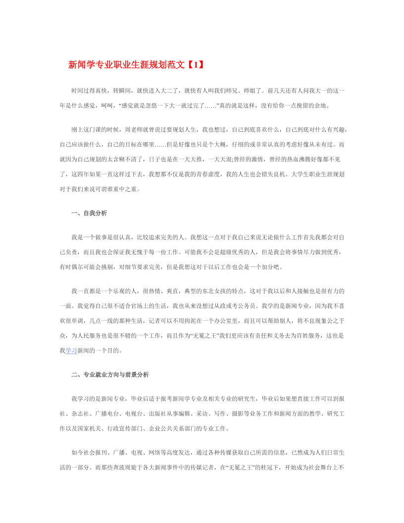 新 闻 学 专 业 职 业 生 涯 规 划 范 文