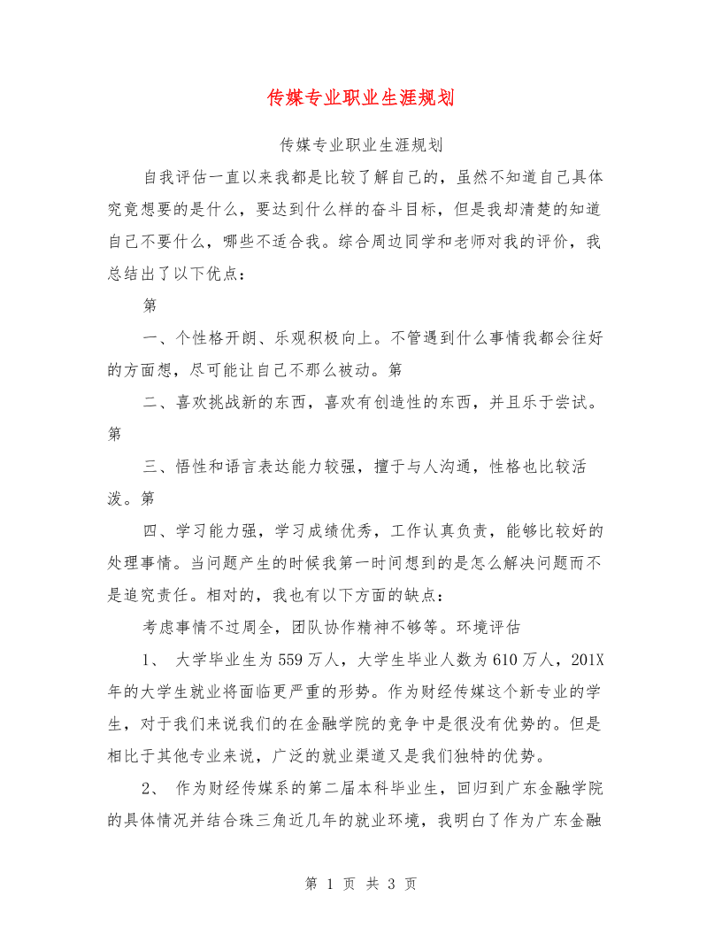 传媒专业职业生涯规划【可编辑版】