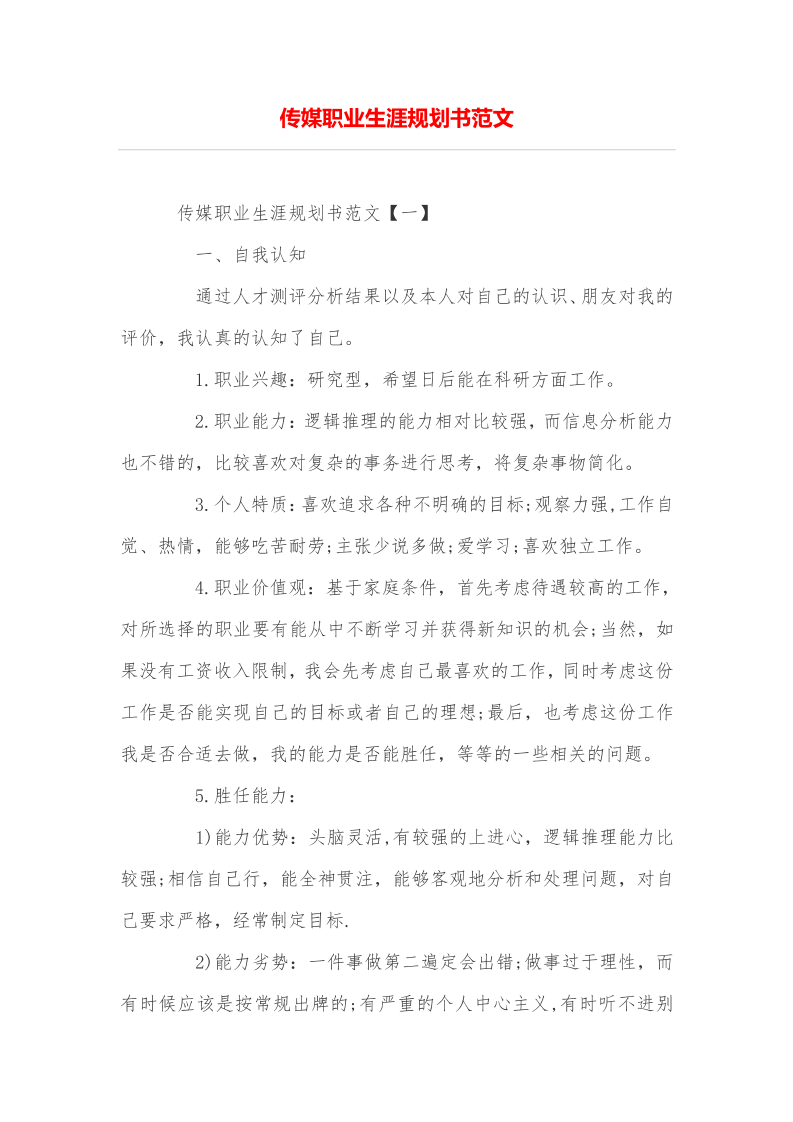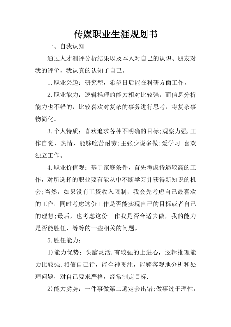 传媒职业生涯规划书