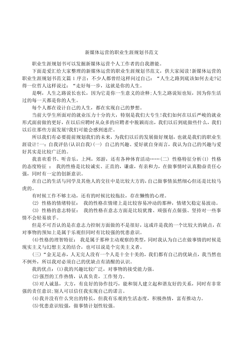 新媒体运营的职业生涯规划书范文