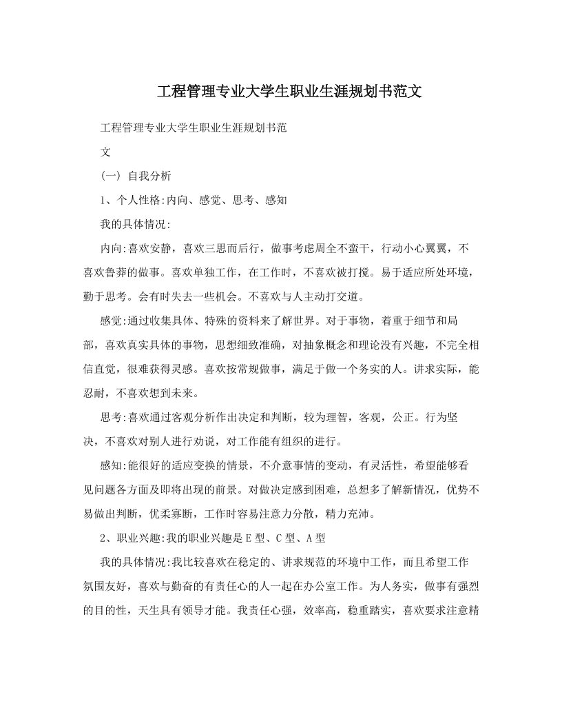 工程管理专业大学生职业生涯规划书范文