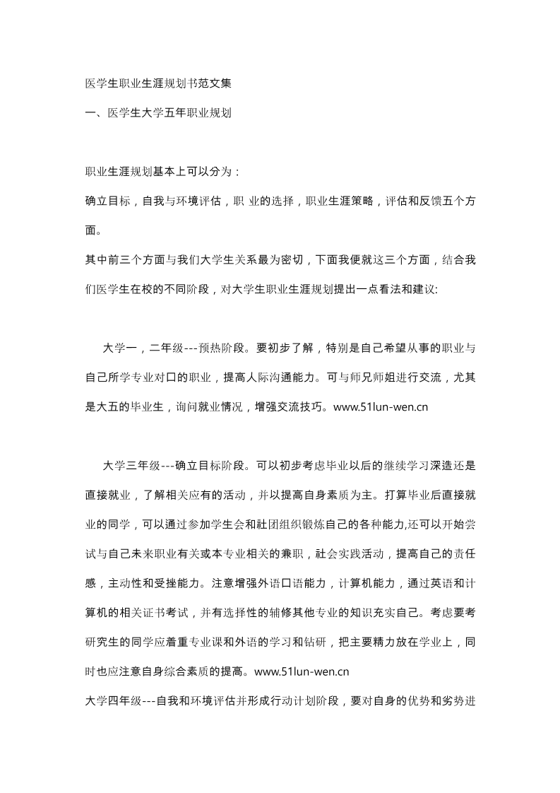 医学生职业生涯规划书范文集