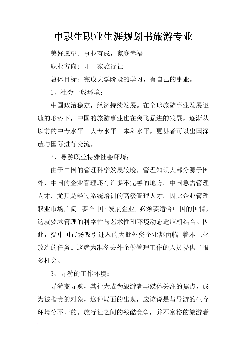 中职生职业生涯规划书旅游专业