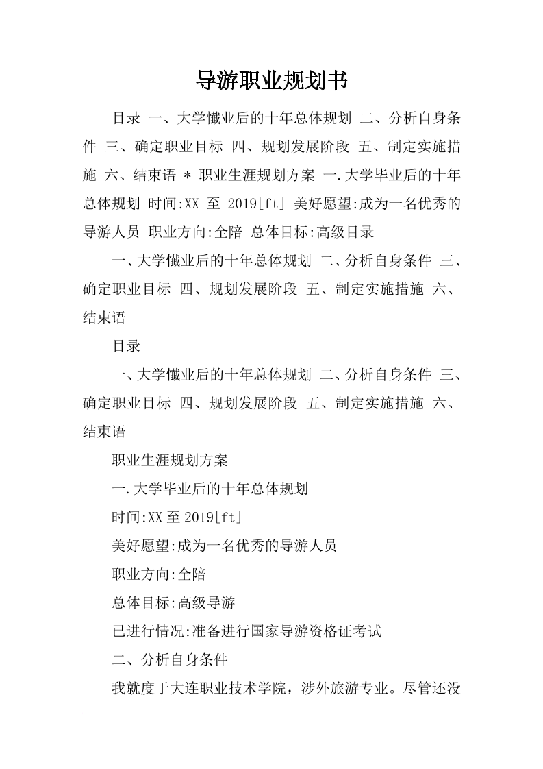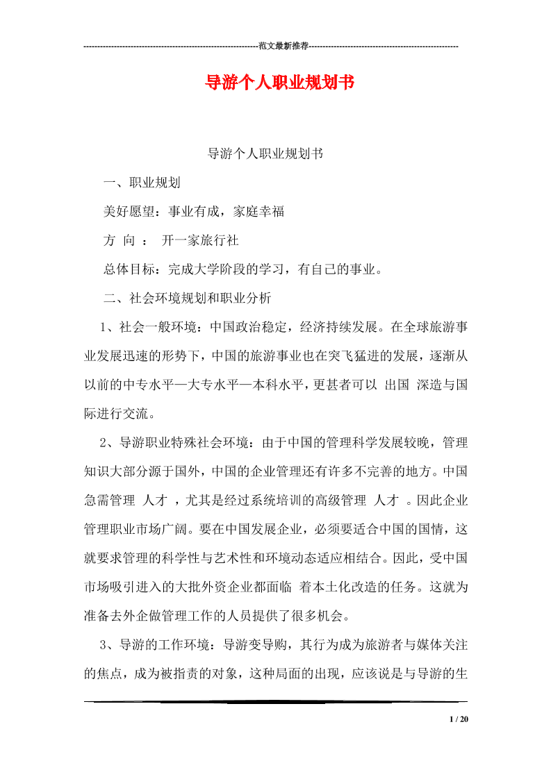 导游职业规划书