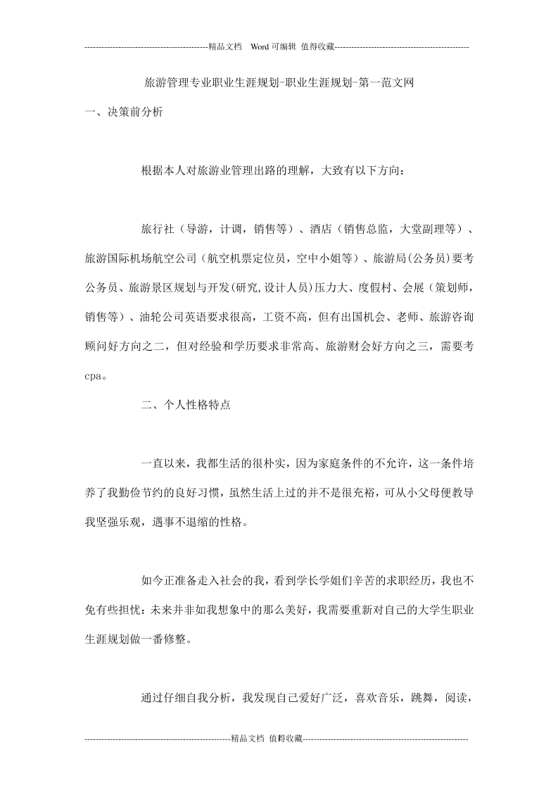 旅游管理专业职业生涯规划-职业生涯规划