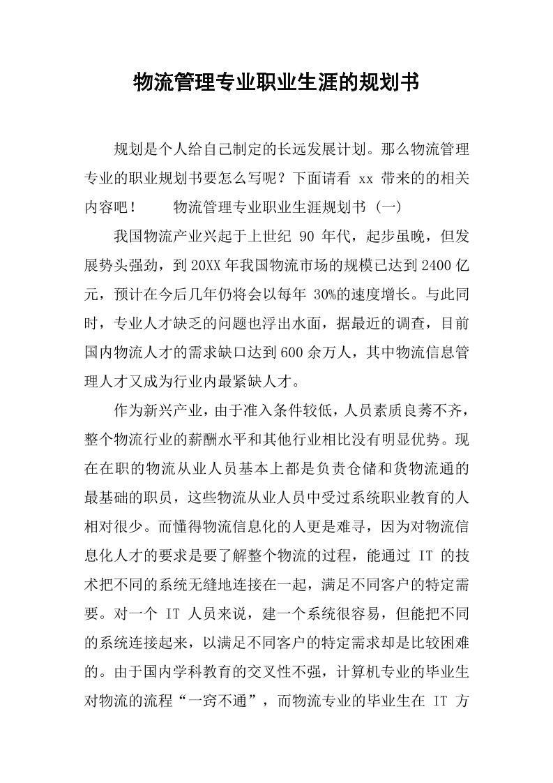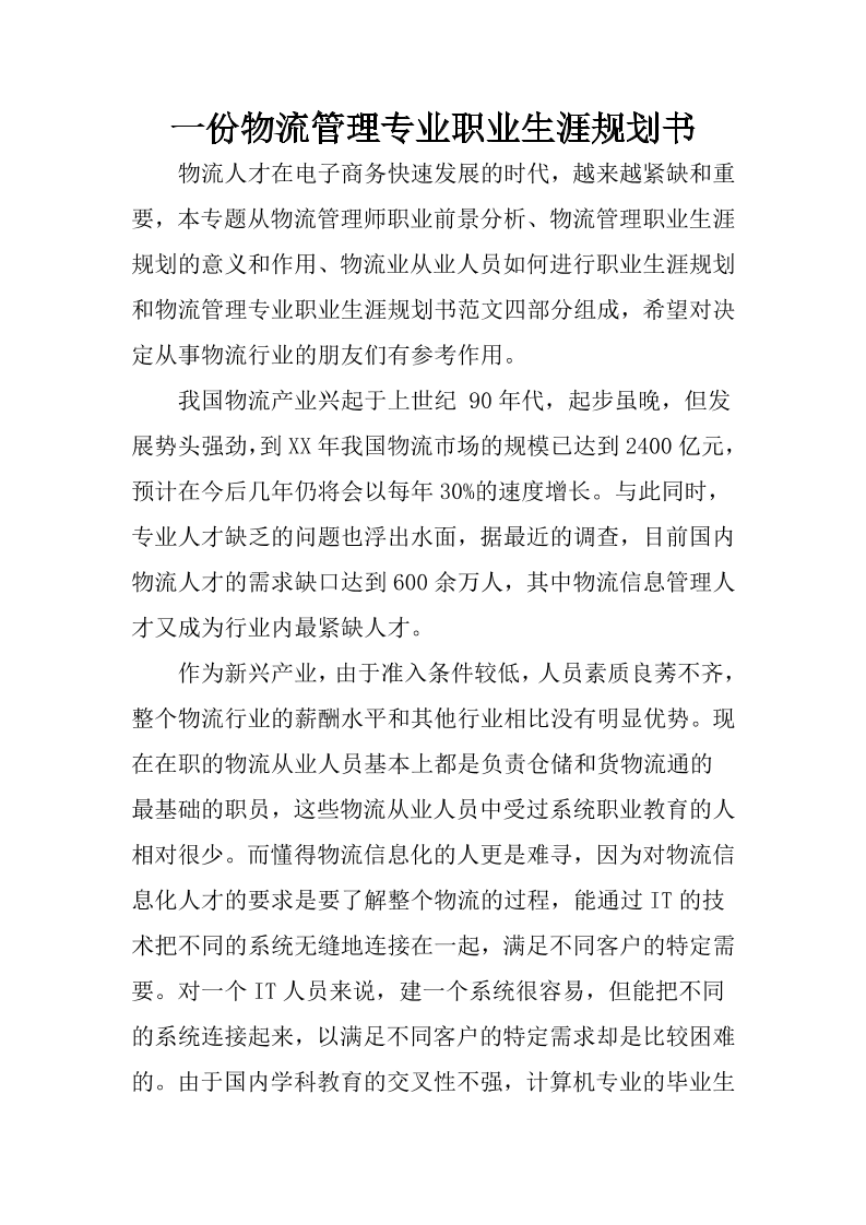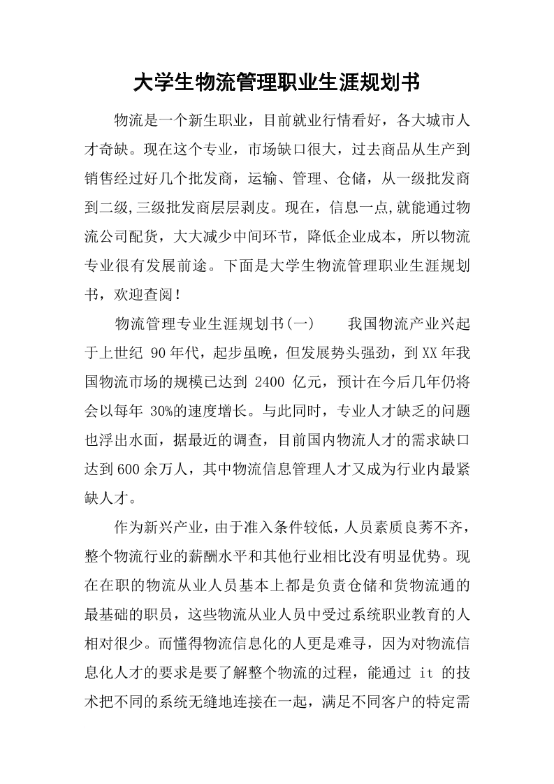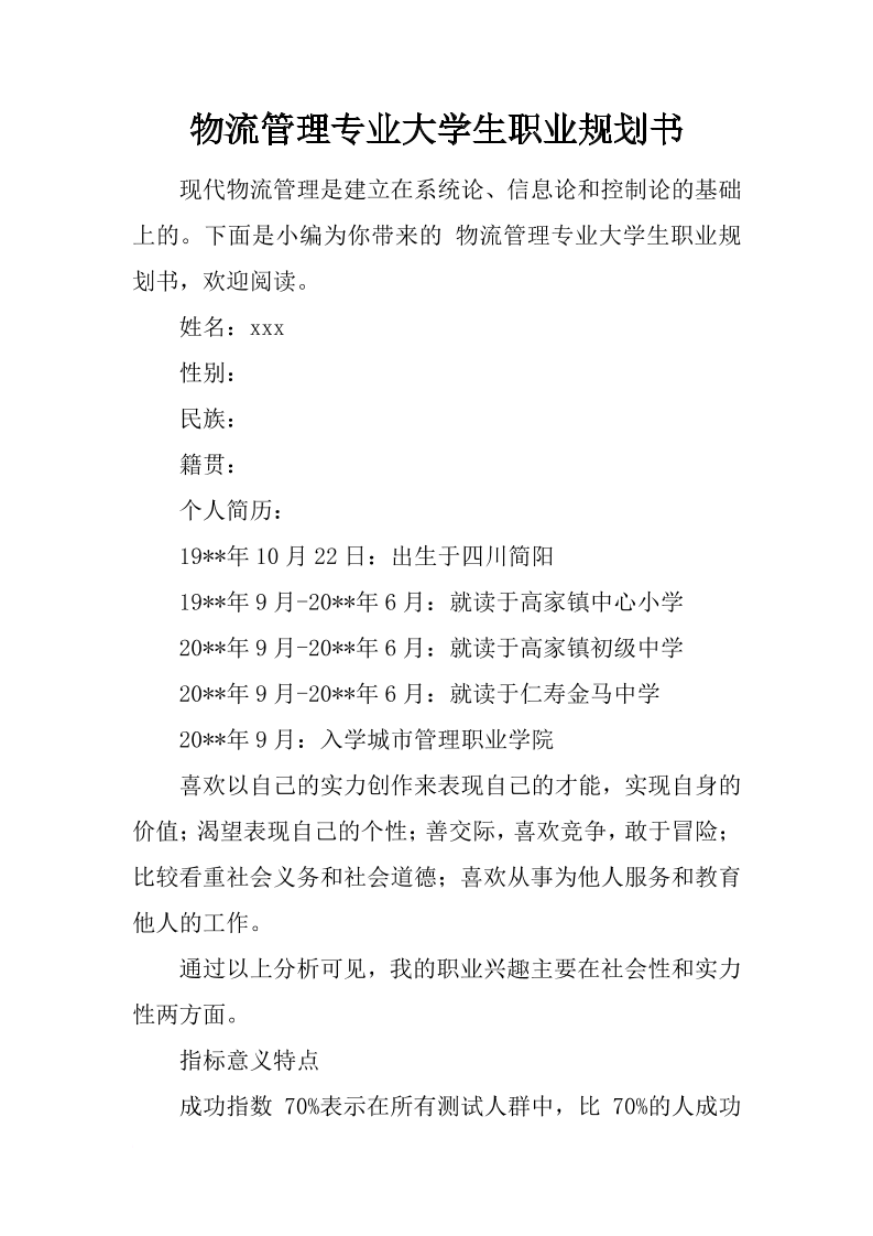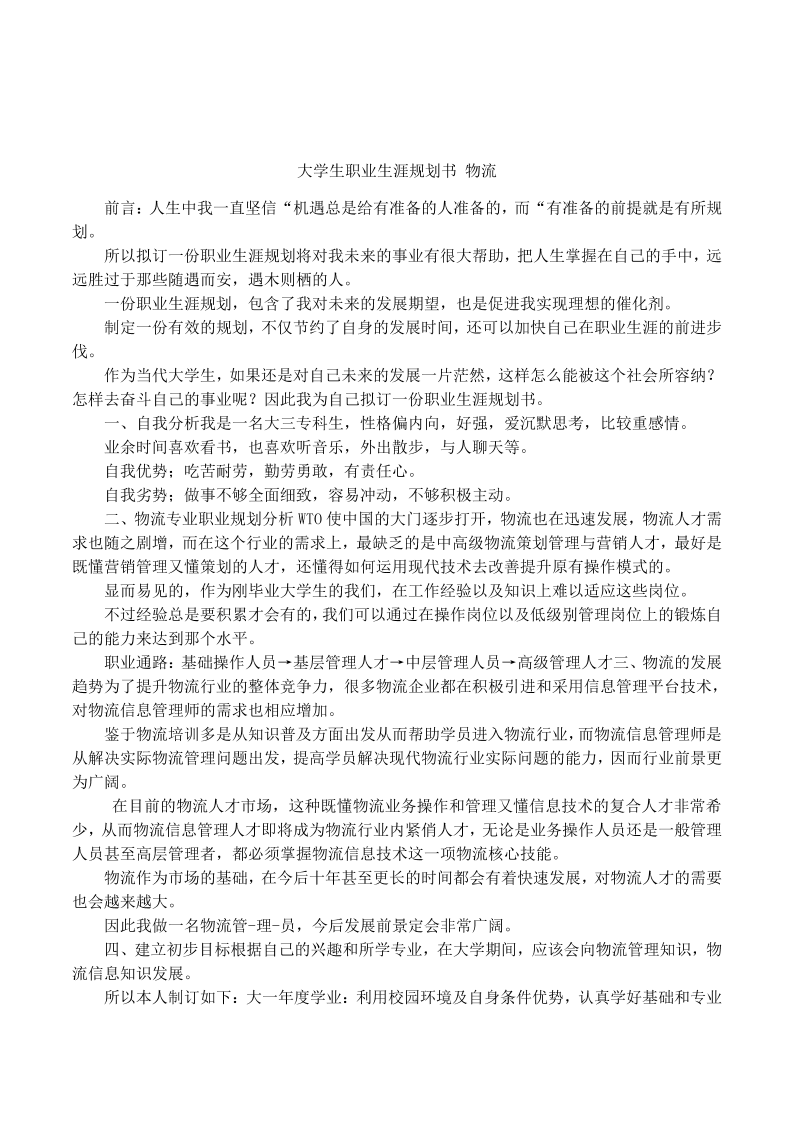 大学生职业生涯规划书-物流