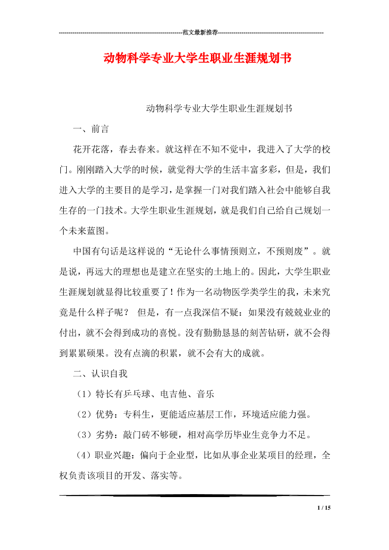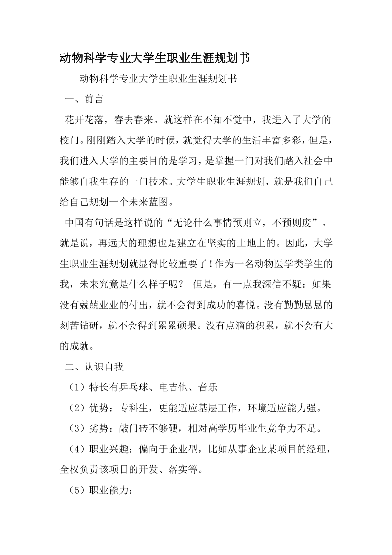 动物科学专业大学生职业生涯规划书-最新精选范文