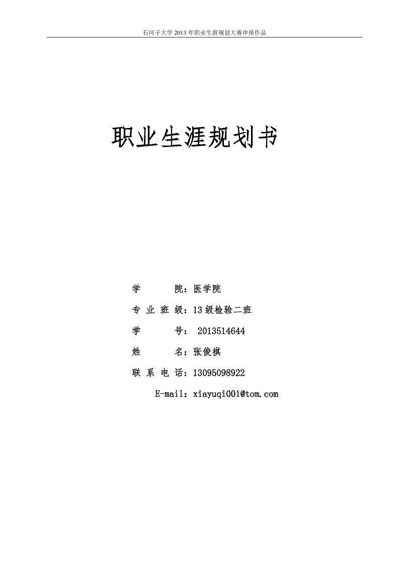 13级医学检验职业生涯规划