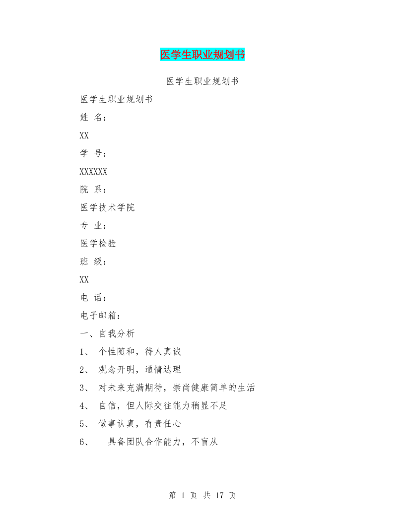 医学生职业规划书(最新篇)