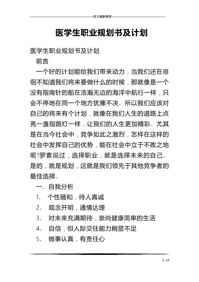医学生职业规划书与计划