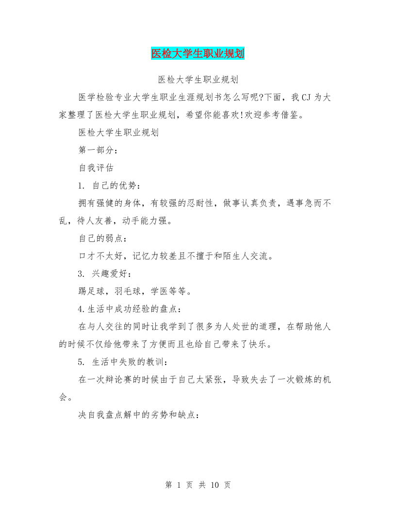 医检大学生职业规划