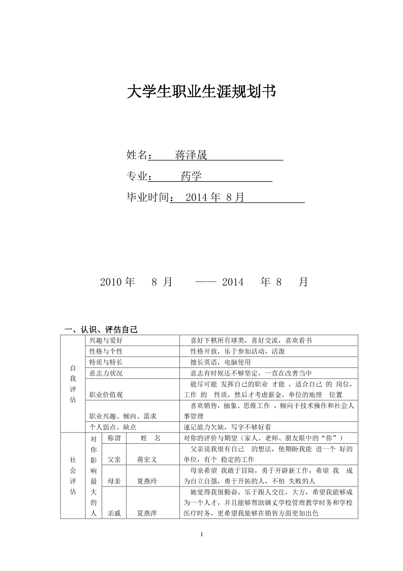 大学生属于医药学职业生涯规划书