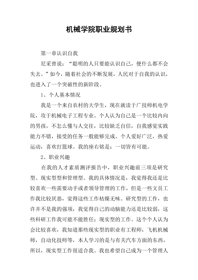 机械学院职业规划书