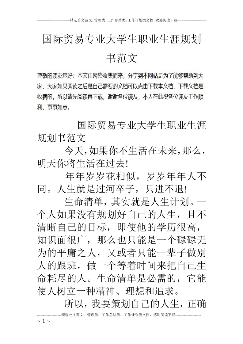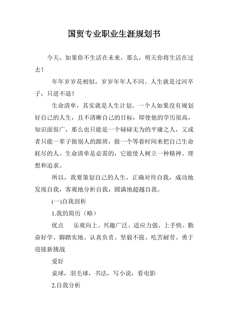 【国贸专业大学生职业生涯规划书范文】-大学生生涯规划书范文