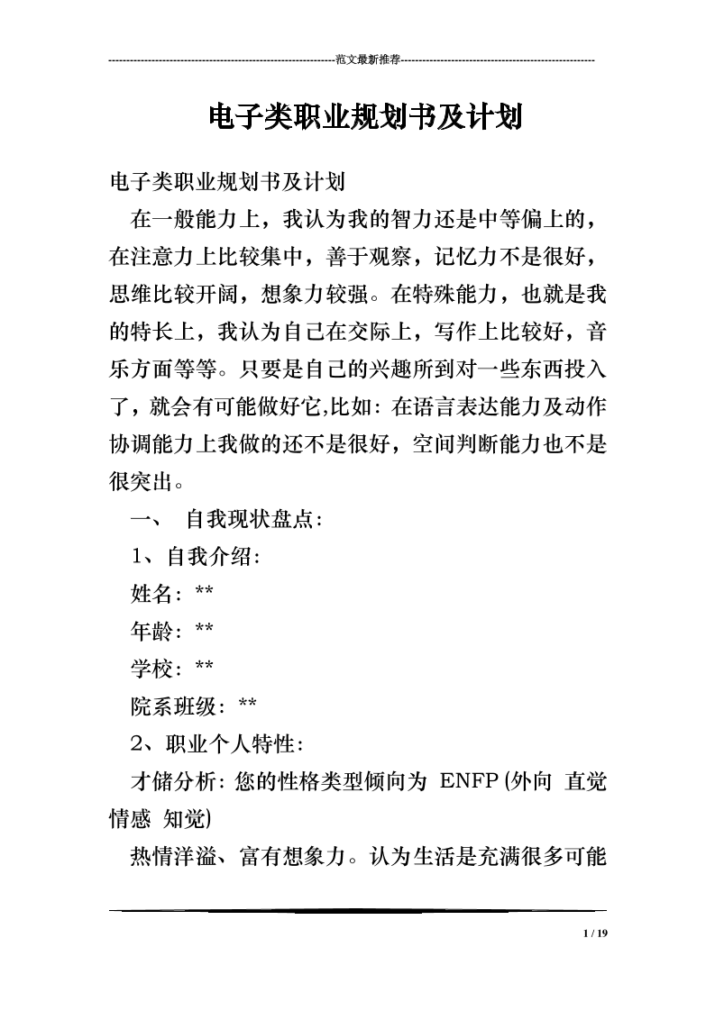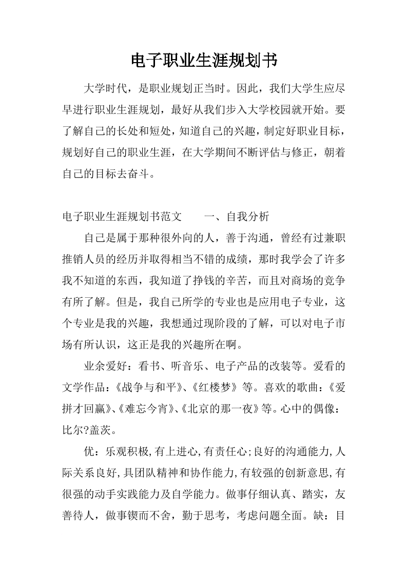 电子类职业规划书及计划