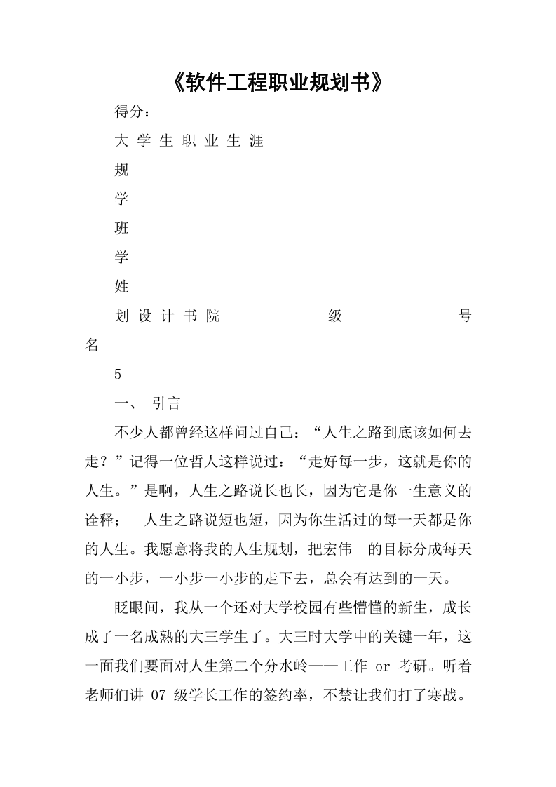 《软件工程职业规划书》