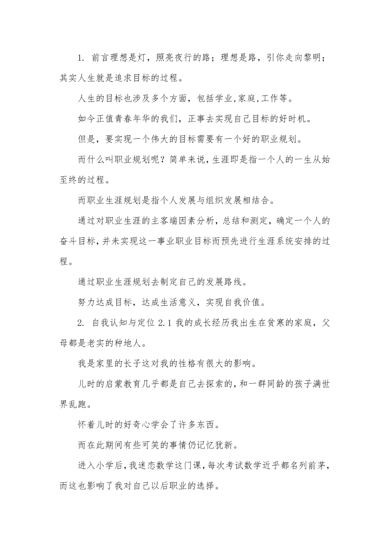 生涯规划书模板