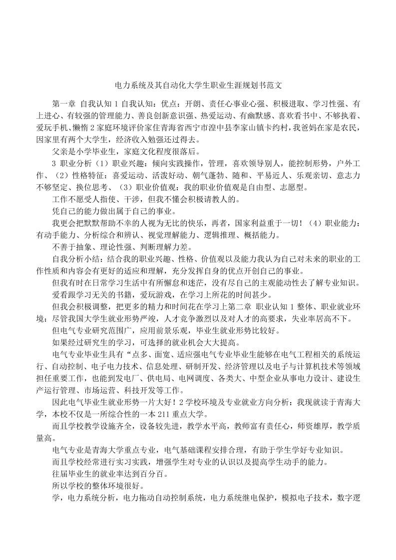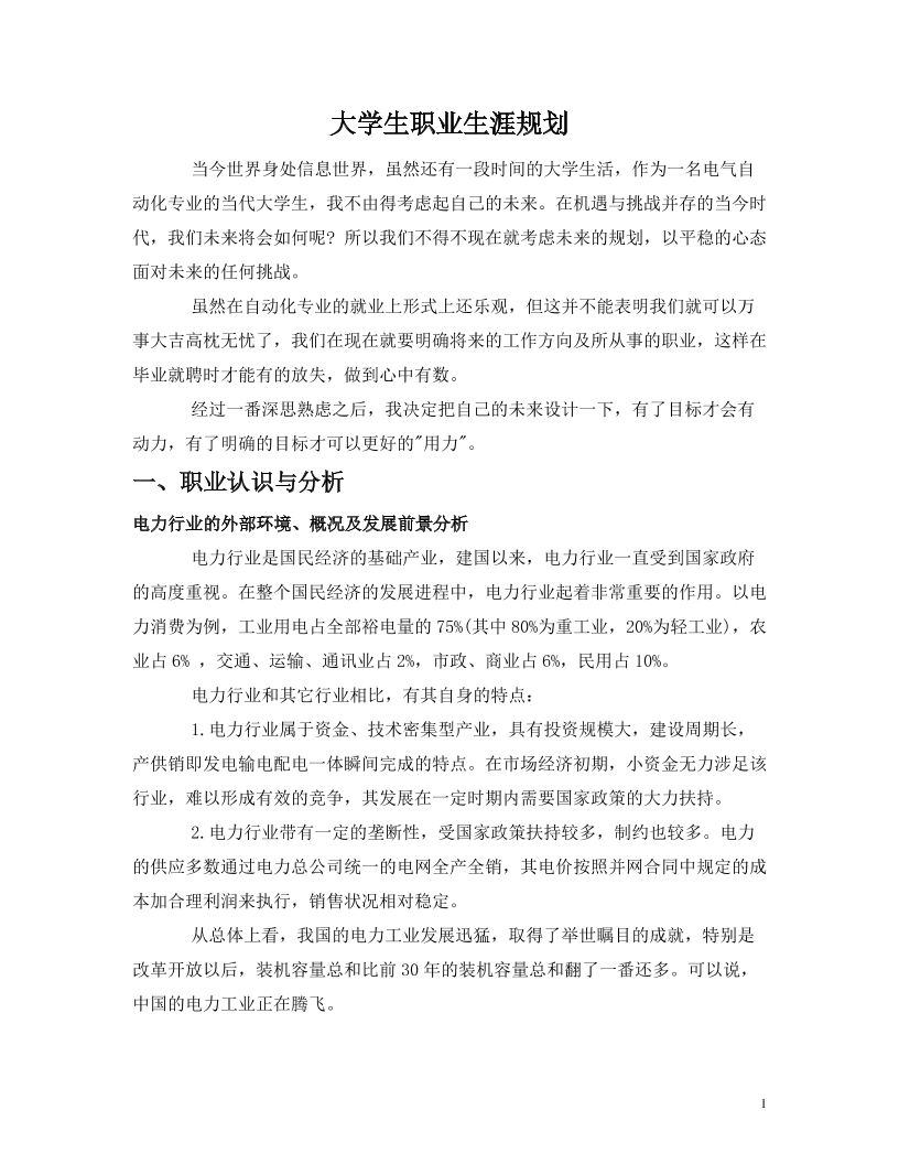 03 电 气 信 息 专 业 大 学 生 职 业 生 涯 规 划 范 文