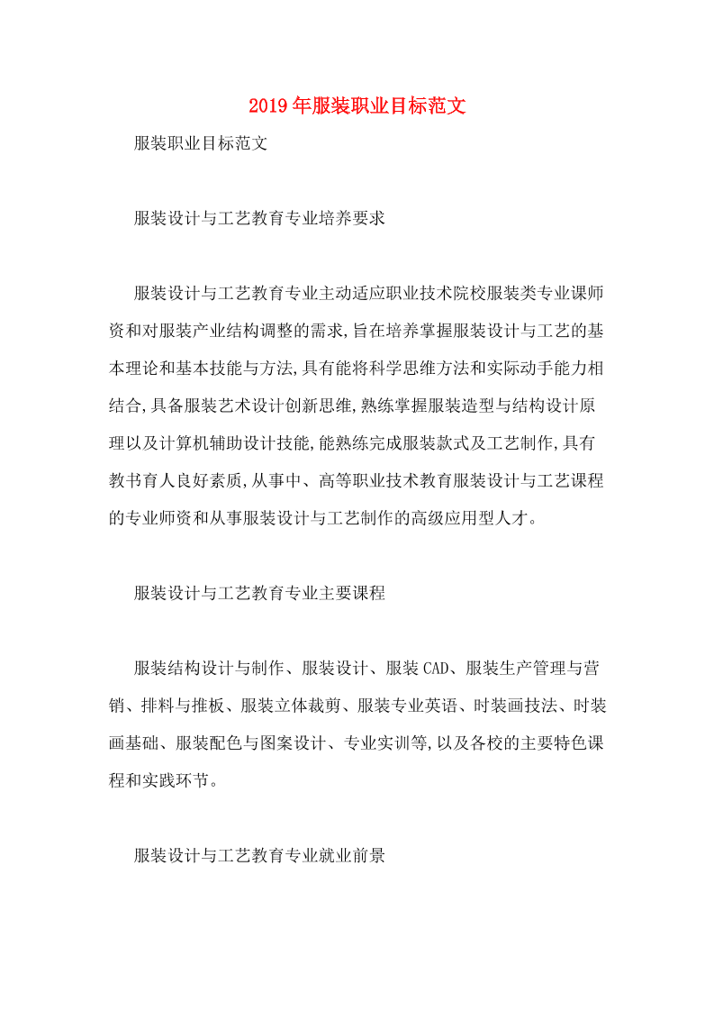 2019年服装职业目标范文