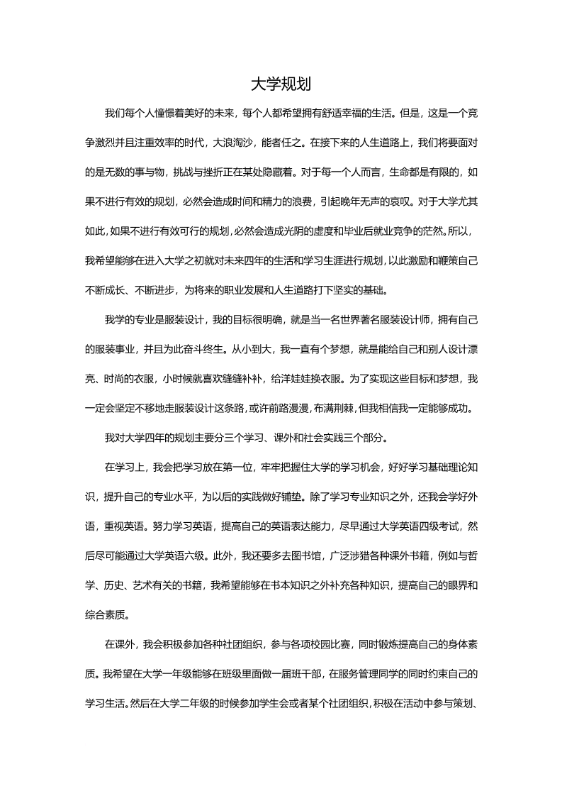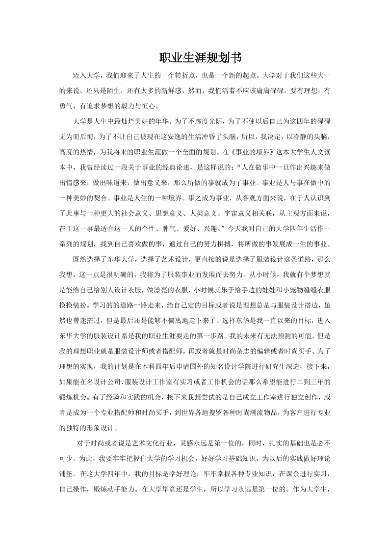 大学职业生涯规划书300字服装设计专业