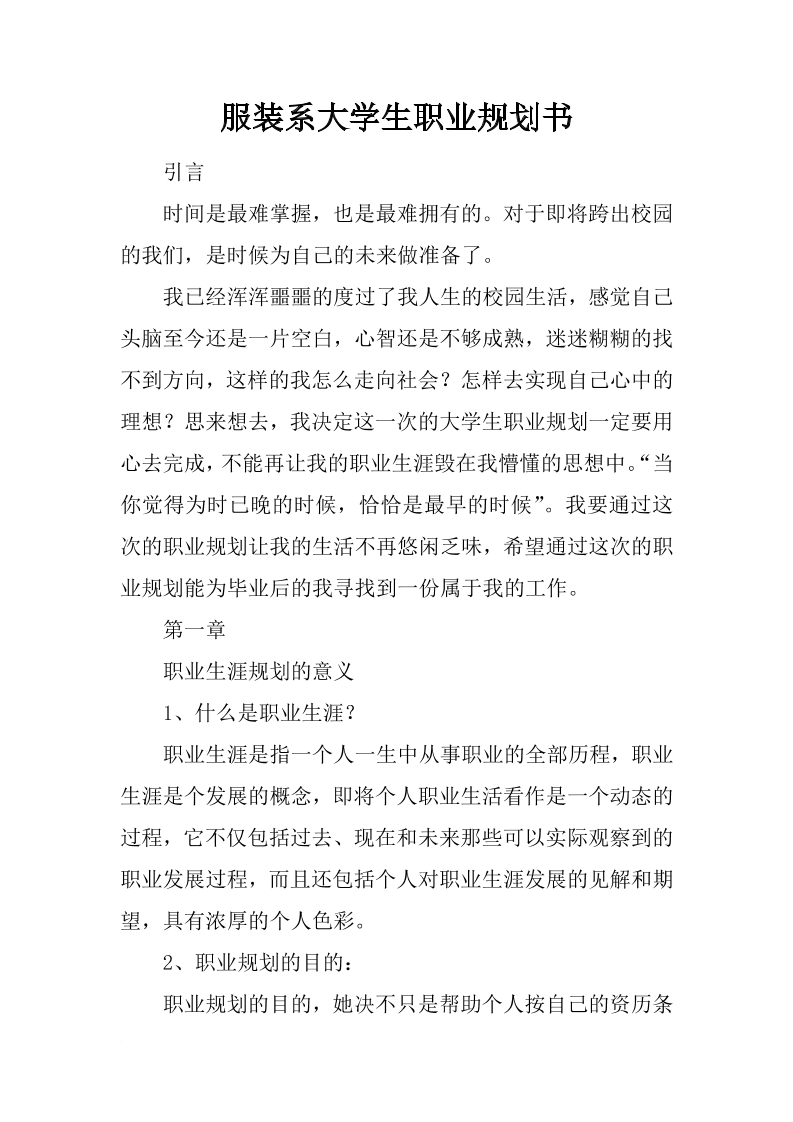 服装系大学生职业规划书
