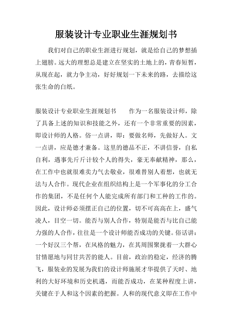 大学生职业生涯规划书服装设计2