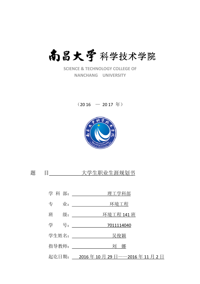 环境工程学院许超职业生涯规划书-(1)