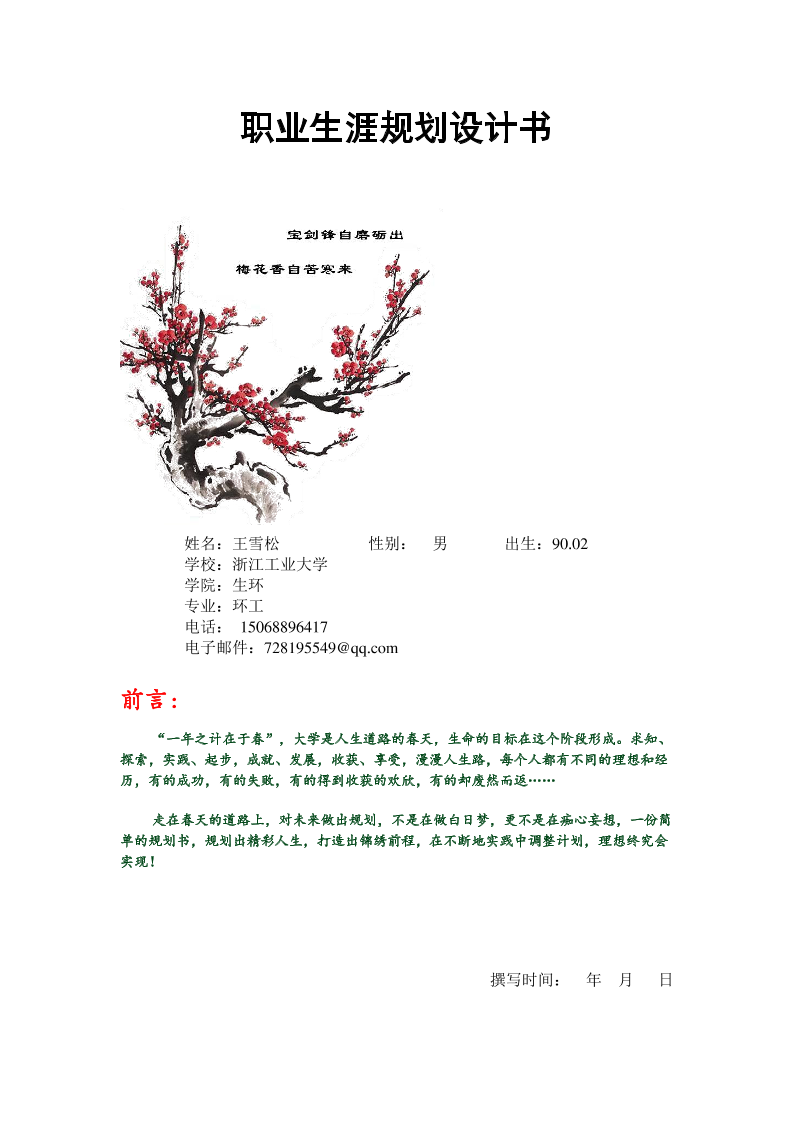 职业生涯规划书扉页资料