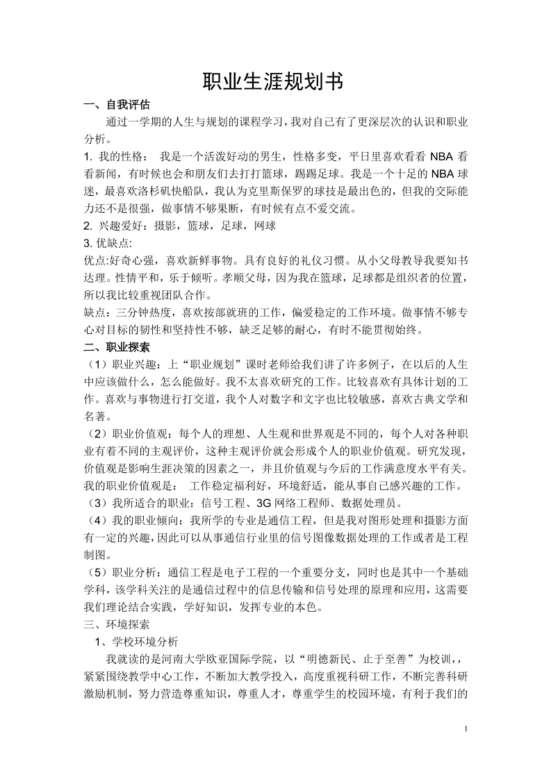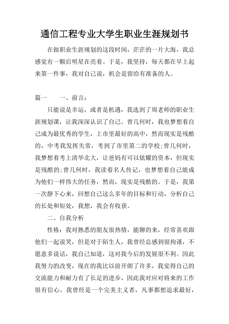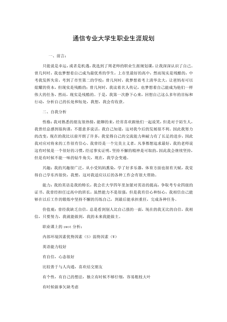 通信工程职业生涯规划书 (1)