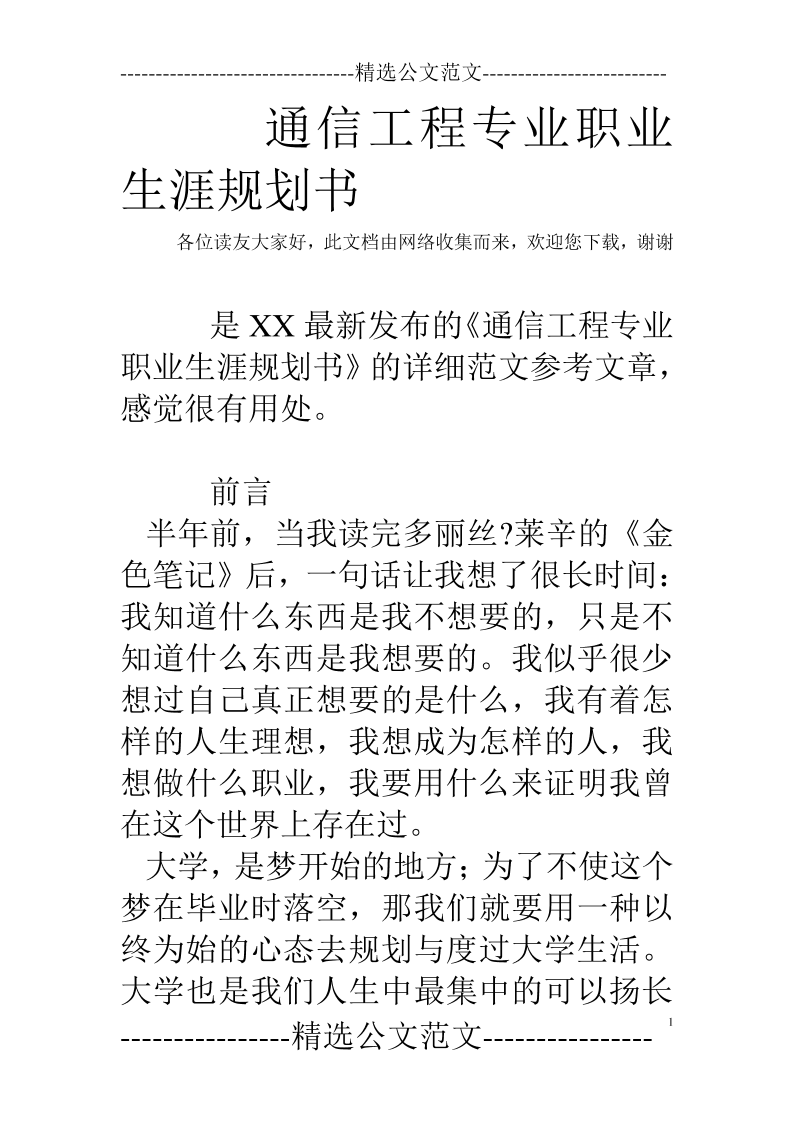 通信工程专业职业生涯规划123