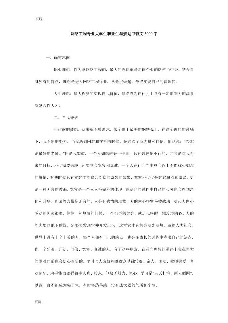网络工程专业大学生职业生涯规划书范文3000字