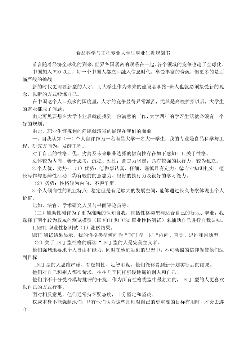 食品专业大学生职业生涯规划 (1)
