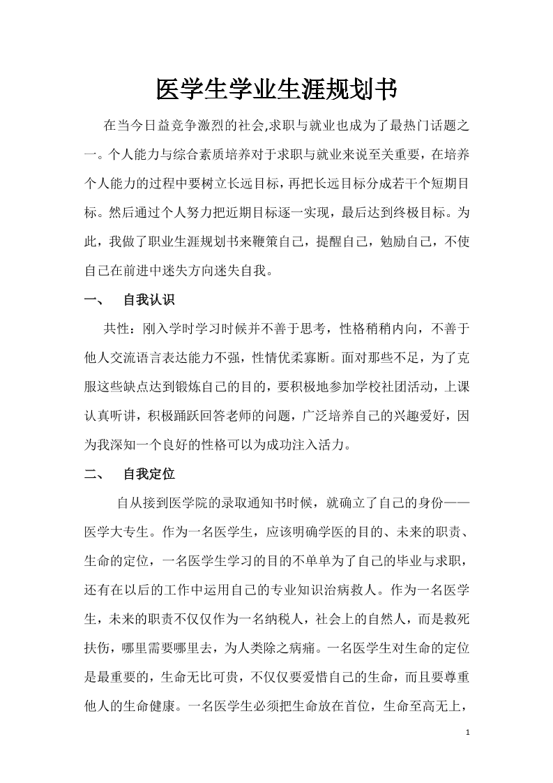 医学生学业生涯规划书完整版2