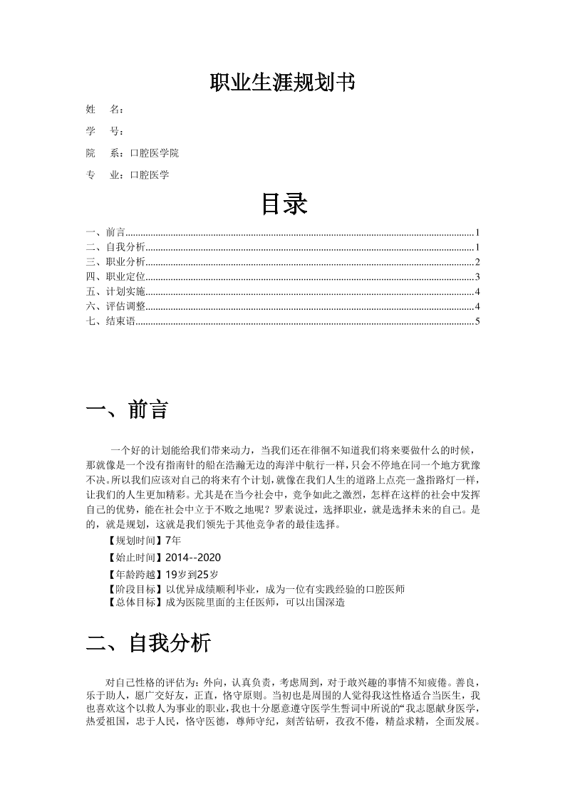 口腔医学生的职业生涯规划书