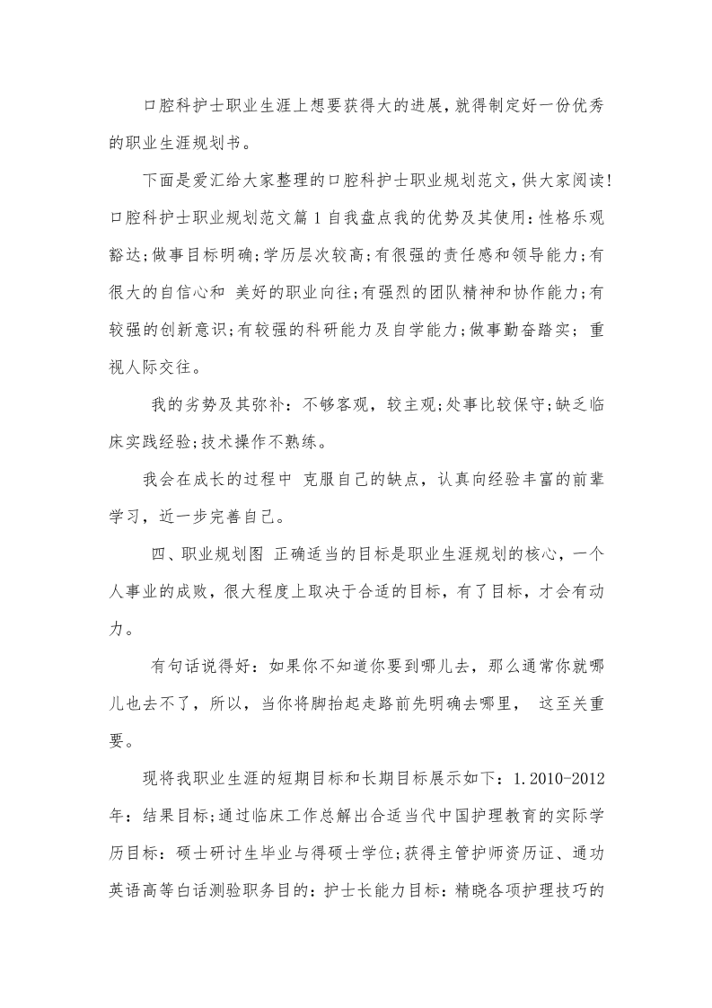 口腔科护士职业规划范文