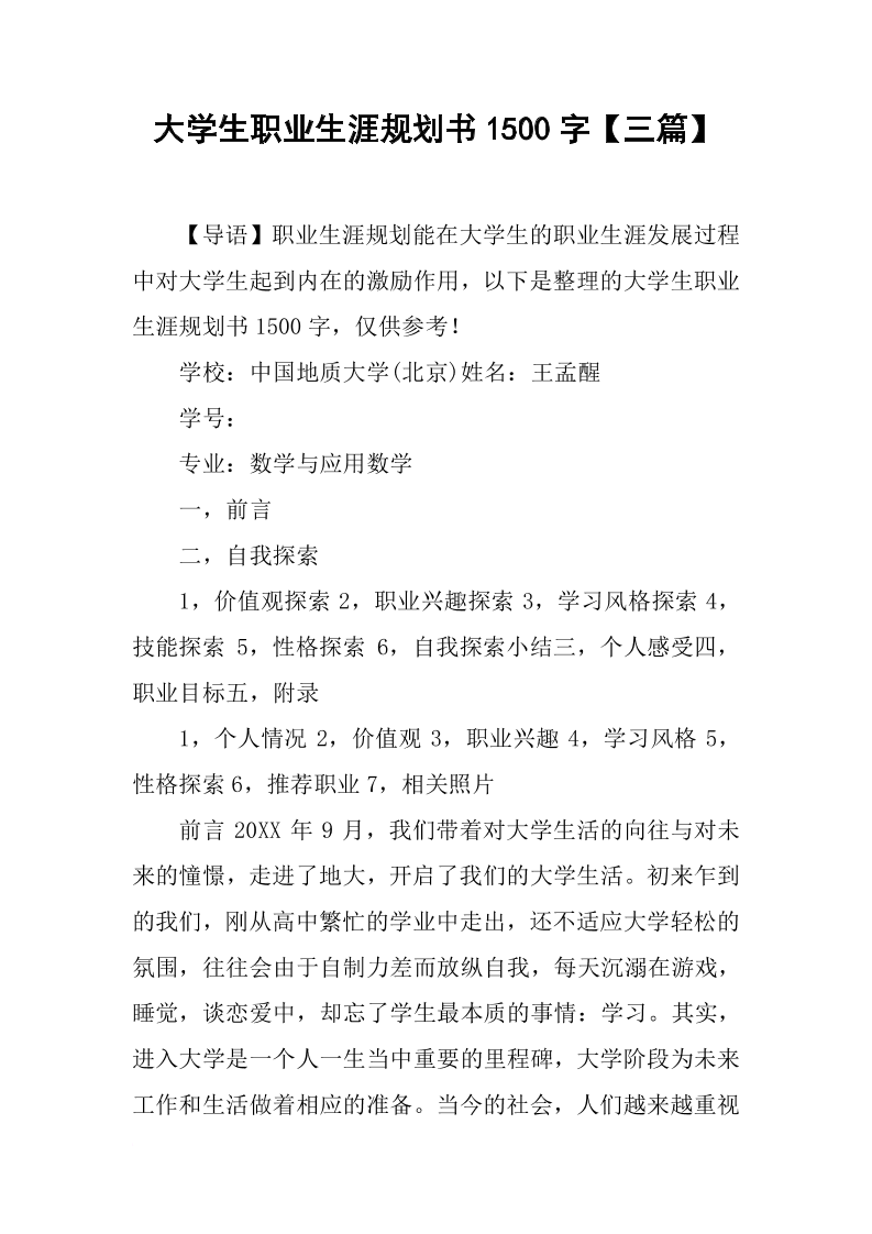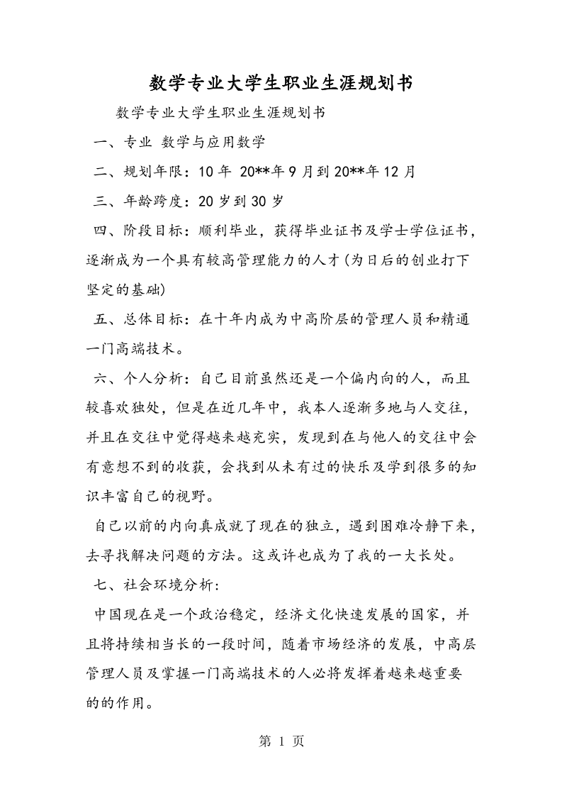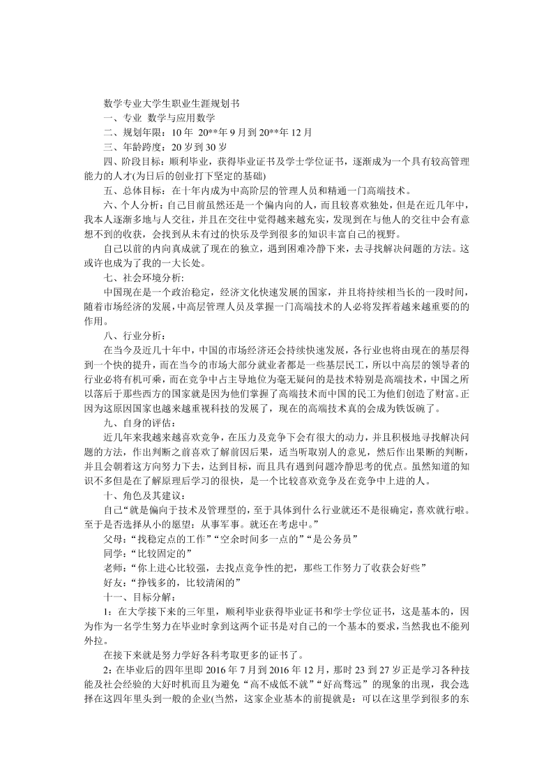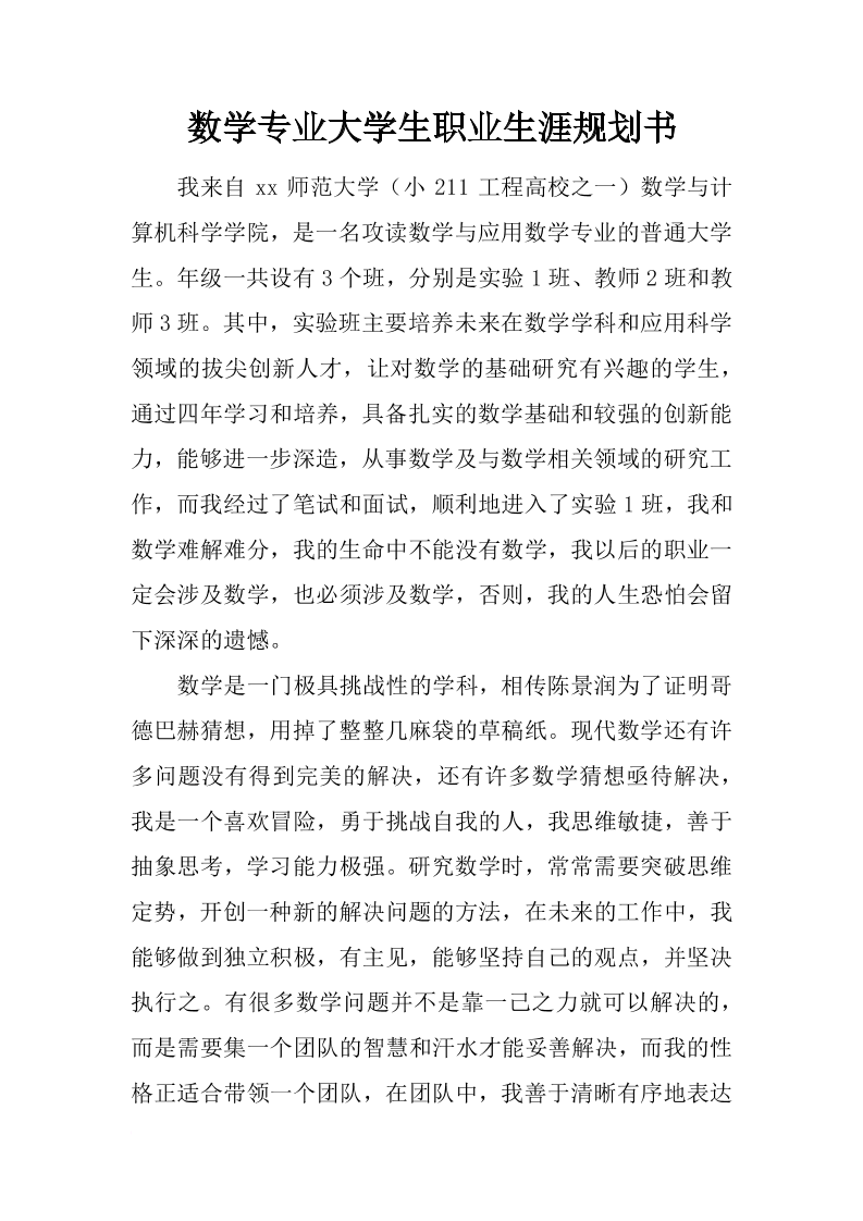 2019年整理--大学生职业生涯规划书(数学专业)-0