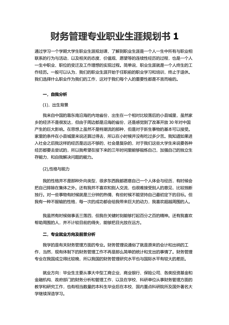 财务管理专业职业生涯规划书1