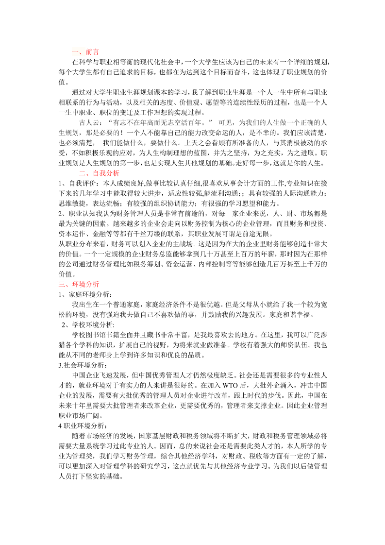财管职业规划书2000字